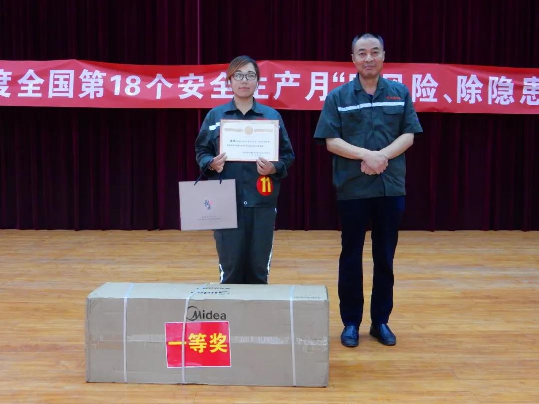 三等獎(jiǎng)三名,由安環(huán)部杜部長(zhǎng)為來(lái)自動(dòng)力廠獲獎(jiǎng)選手段冉、來(lái)自熟料廠的獲獎(jiǎng)選手李潔和來(lái)自煉鋼廠的獲獎(jiǎng)選手李艷琦分別頒發(fā)榮譽(yù)證書及獎(jiǎng)品,并合照留念。