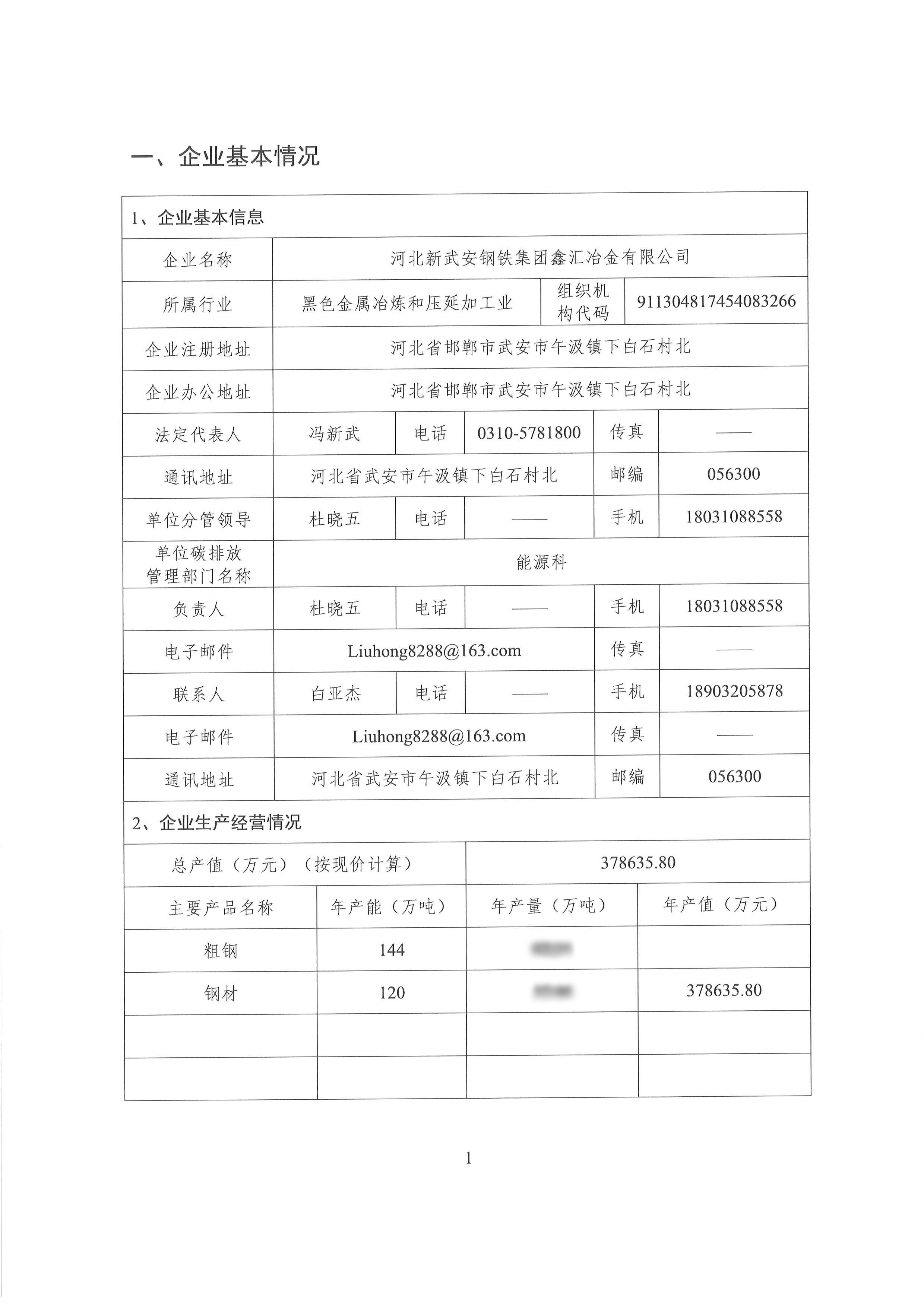 2022年河北新武安鋼鐵集團鑫匯冶金有限公司碳排放報告