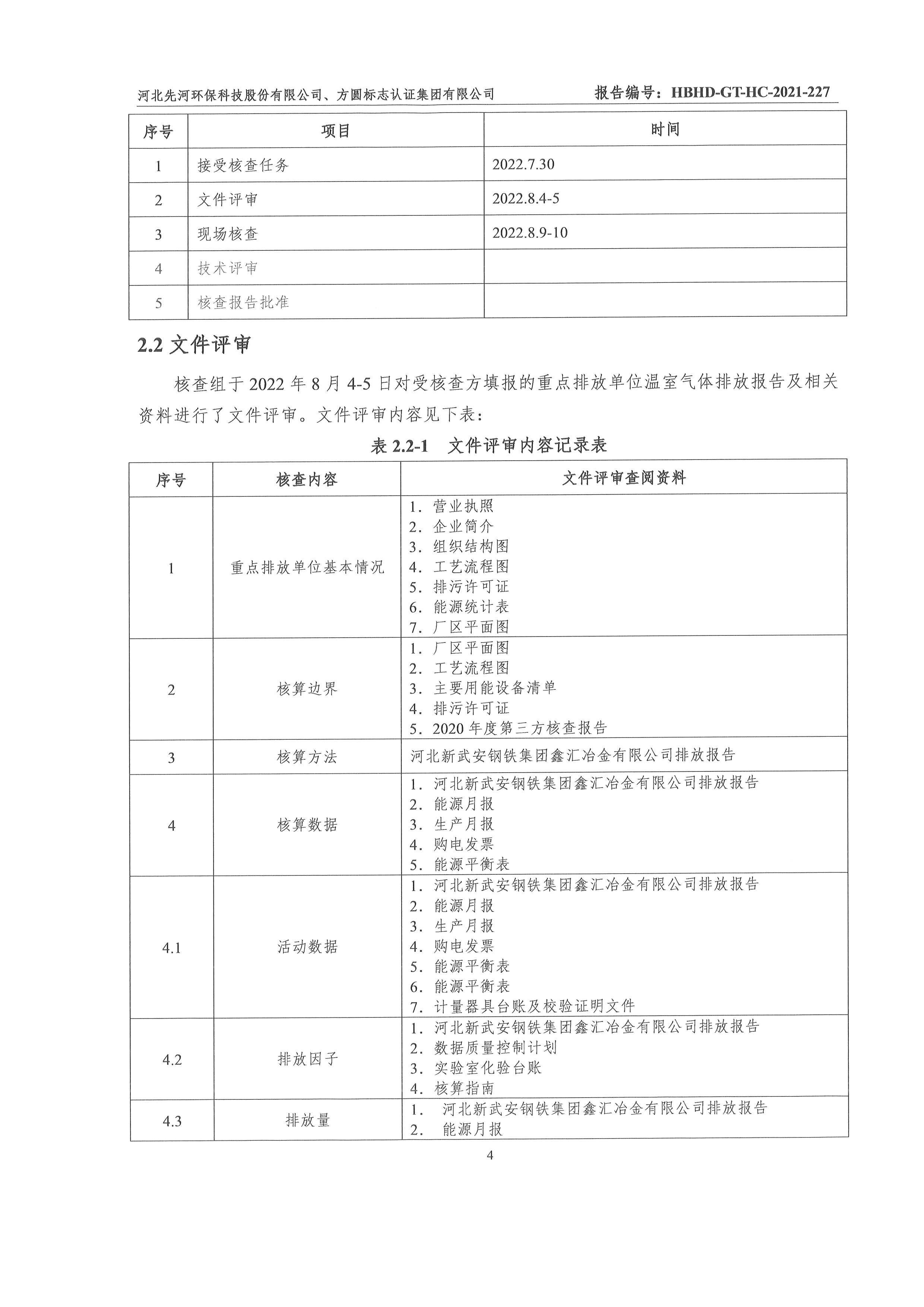2022年河北新武安鋼鐵集團鑫匯冶金有限公司碳排放核查報告